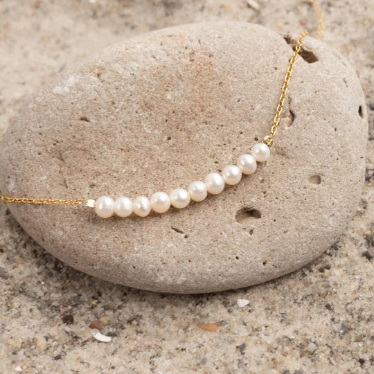 Give a gift that speaks from the heart. The Evelyn Pearl Golden Necklace is a symbol of tenderness and devotion, featuring a radiant freshwater pearl resting on a soft golden chain. Its gentle glow mirrors the warmth and beauty of the person you love.